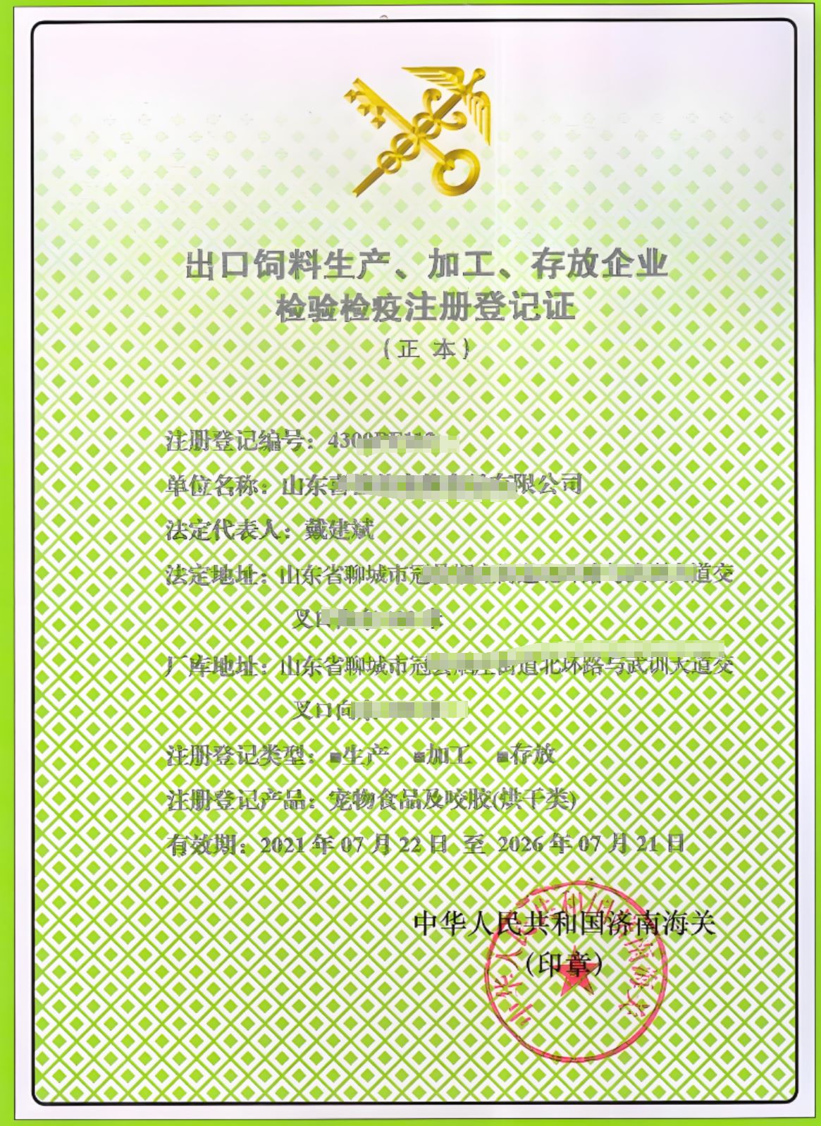 综上所述,出口饲料生产、加工、存放企业检验检疫注册登记证是企业出口饲料产品的重要凭证和保障,企业应重视并积极申请该证书,以提升自身的竞争力和影响力。